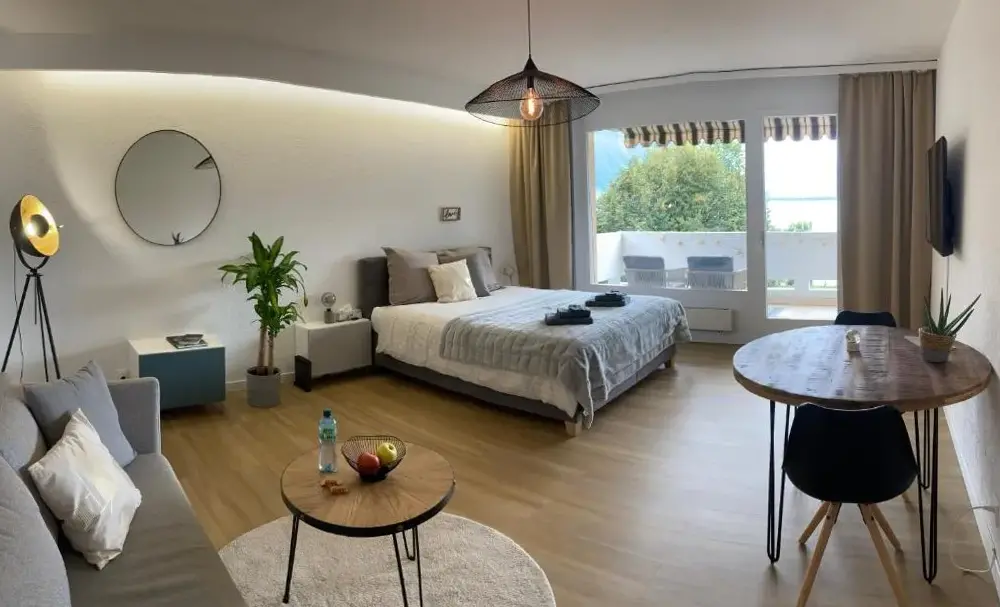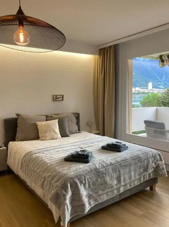 Weitere Informationen zu Montreux Central Boutique ApartmentDas Studio au bord du lac - Vue imprenable bietet einen einzigartigen Blick auf den See und liegt direkt am Ufer des Sees. Das Objekt verfügt über kostenlose Parkplätze sowie freies WLAN. Die Unterkunft ist ideal für Reisende, die Ruhe und Natur genießen möchten. Auf dem Balkon kann man den See ausgiebig geniessen.