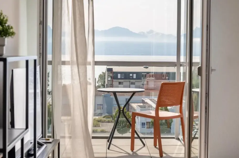 Weitere Informationen zu BnB chez FanfanModern Morges Apartments bieten eine moderne Unterkunft mit guter Ausstattung und zentraler Lage. Die Wohnungen sind sauber und verfügen über grundlegende Dienstleistungen wie Waschmaschine und Trockner. Das Objekt liegt direkt am Genfersee und ermöglicht einen tollen Blick auf die umliegenden Berge.